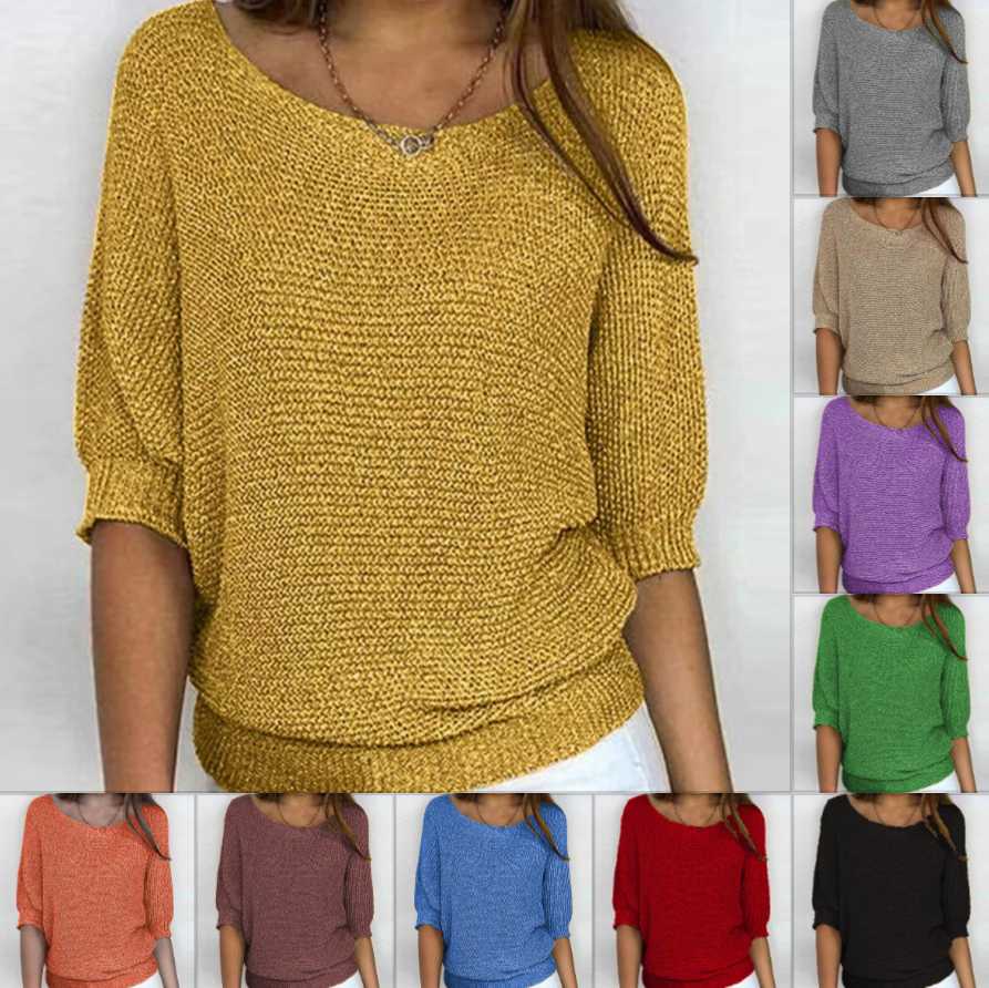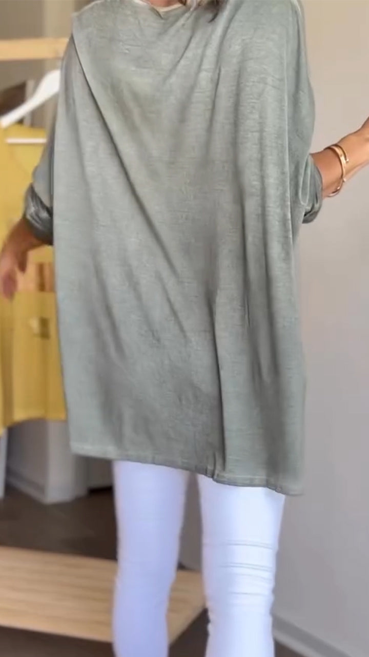 Damski top z długim rękawem i dekoltem w serek w jednolitym kolorze, luźny, bawełniany