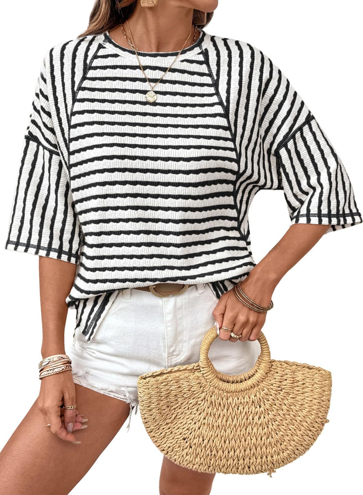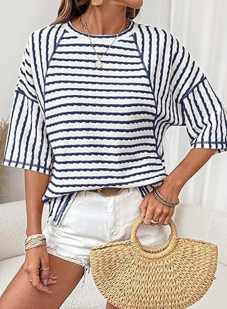 🔥OMEZENÁ ČASOVÁ NABÍDKA 50% SLEVA⚡50K+ PRODÁNO💕🔥Dámské oversized pruhované tričko s barevným blokem na léto