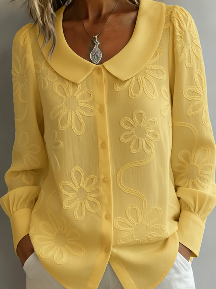 Vintage košile s vyšívaným květinovým vzorem a límcem Peter Pan