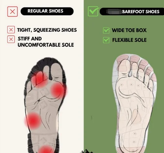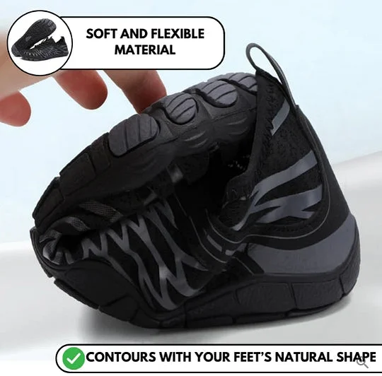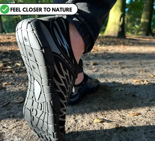 Ο φαρδύς σχεδιασμός των δακτύλων εξασφαλίζει ότι κάθε δάχτυλο του ποδιού σας είναι αρκετά ευέλικτο για να βρει δύναμη και υποστήριξη στο έδαφος. Αυτό επιτρέπει στο πιο δυνατό και ευέλικτο μέρος του σώματος, το πόδι, να υποστηρίζει καλύτερα ολόκληρο το σώμα.