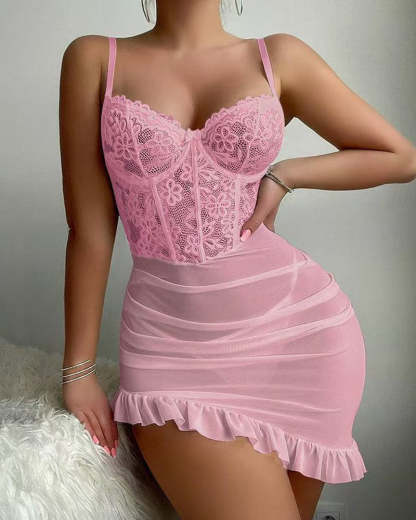 Αφεθείτε στην ρομαντική άνεση με αυτό το λεπτό νυχτικό. Με λουλουδάτες δαντελένιες λεπτομέρειες και μαλακή ριγέ άκρη, συνδυάζει διαφανείς πάνελ με μια κομψή σιλουέτα για μια ονειρεμένη, θηλυκή εμφάνιση. Ιδανικό για χαλάρωση ή ρομαντικές βραδιές, αυτό το κομμάτι συνδυάζει διαχρονική γοητεία με effortless κομψότητα.