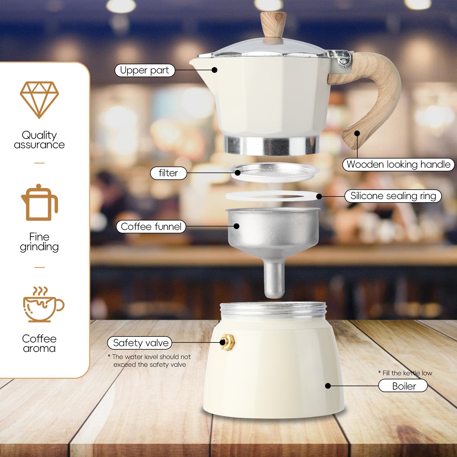 ``` Cafetera de aluminio Moka Pot 3/6, tazas de espresso, cafetera de goteo para espresso y café, cafetera portátil para café italiano y cubano para la cocina de casa y camping ```