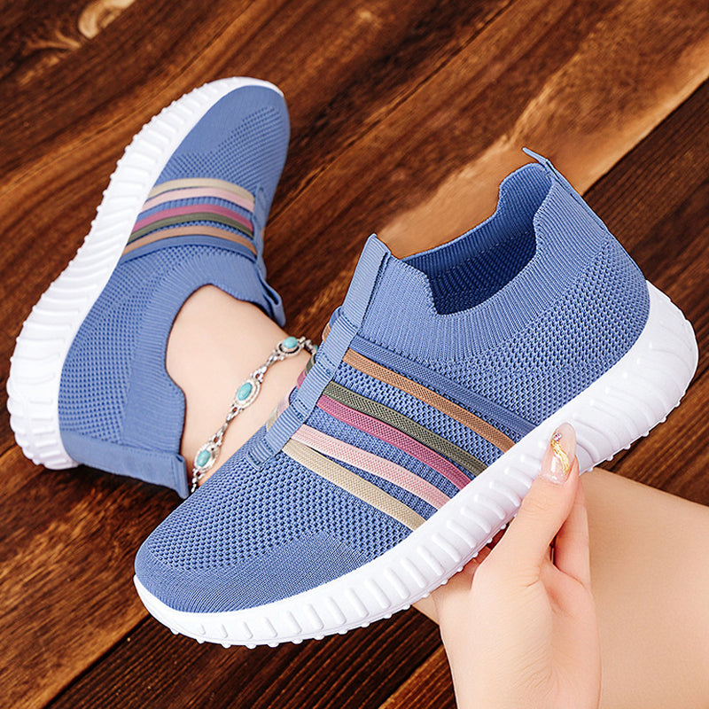 TEJIDO DE PUNTO TRANSPIRABLE - Cuenta con una parte superior de malla de punto voladora que promueve un excelente flujo de aire, manteniendo tus pies frescos, secos y cómodos durante todo el día, previniendo eficazmente el olor y la acumulación de sudor durante el uso prolongado.