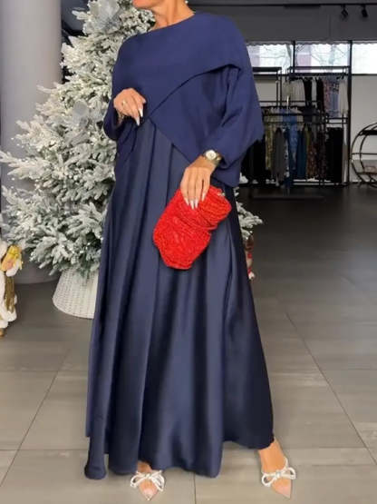 Conjunto de dos piezas para mujer compuesto por un suéter de punto y un vestido de satén