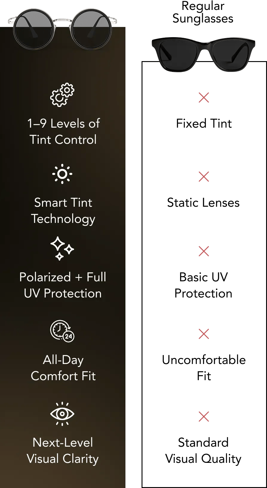 Patirkite neprilygstamą aiškumą, komfortą ir kontrolę – gerokai pranašesnį už įprastus saulės akinius.Pridedama graži pakuotė ir akinių valymo šluostė.