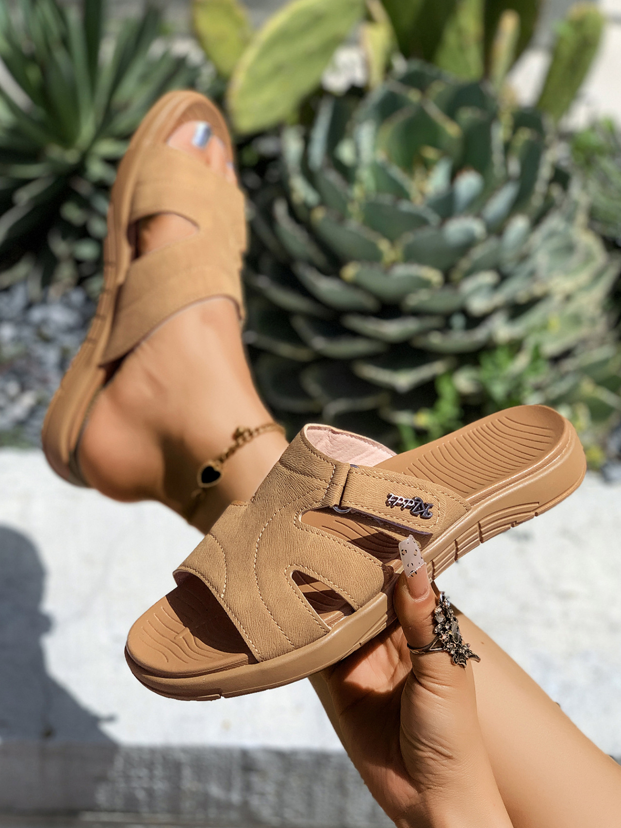 Laisvalaikio patogumo iškirptės platforminės šlepetės