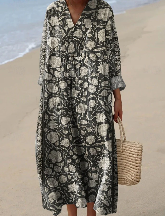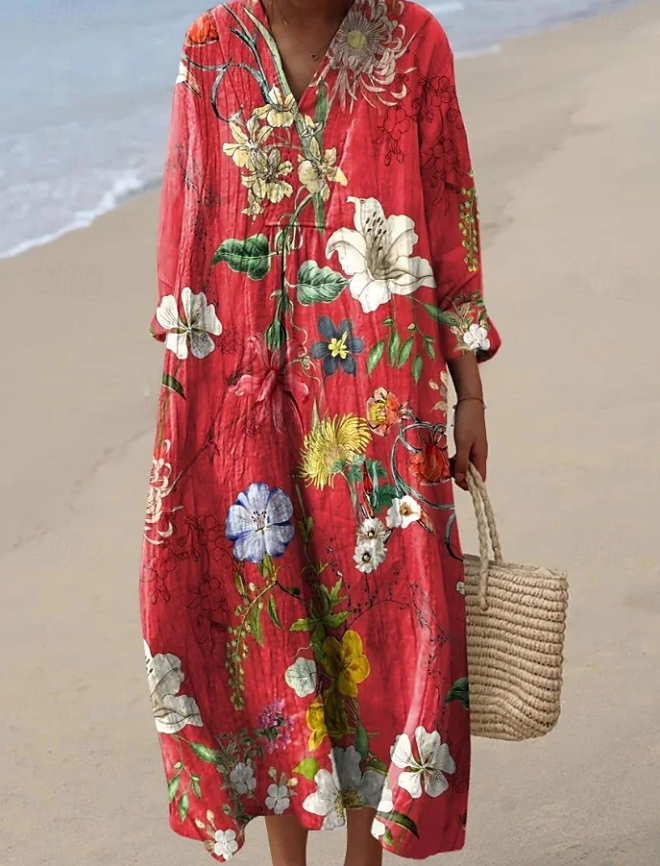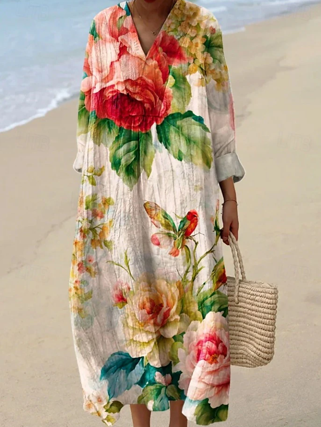 Lengva moteriška midi suknelė su V formos iškirpte