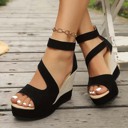 Ortopedyczne sandały na koturnach zostały zaprojektowane tak, aby zapewnić Ci elegancję, uniesienie i wsparcie – bez bólu stóp, który często towarzyszy większości obcasów.