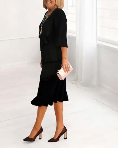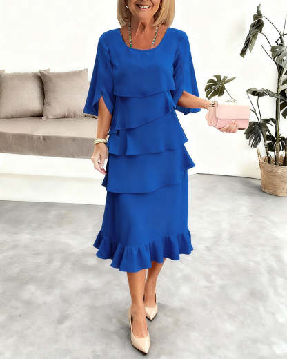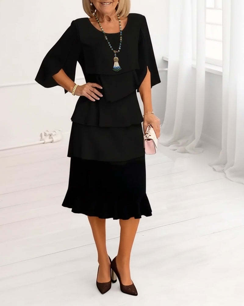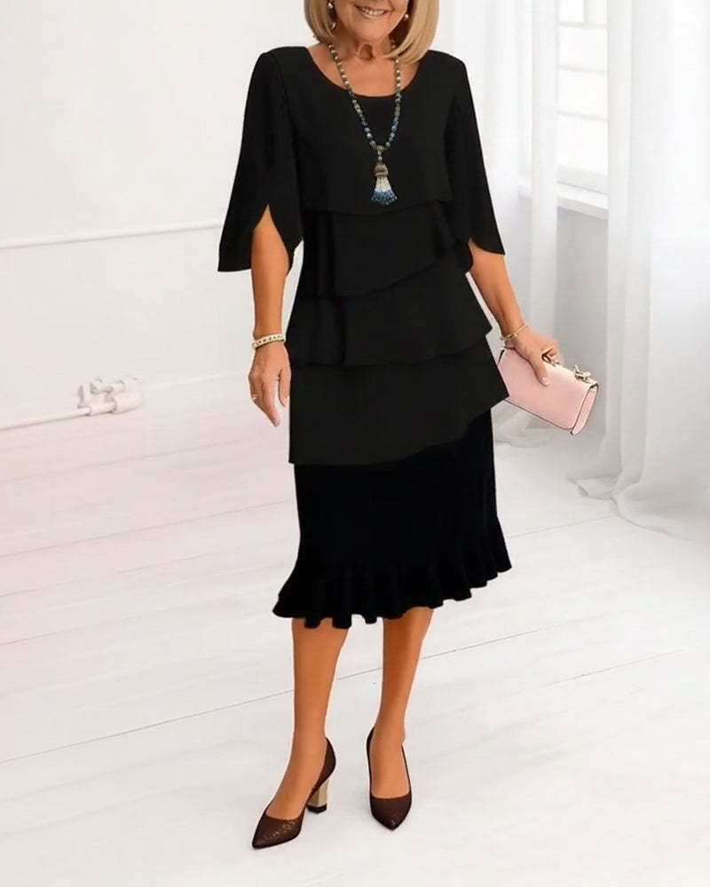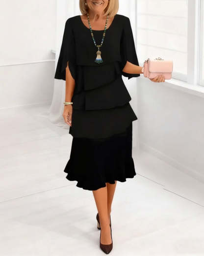 Stylowa sukienka warstwowa z okrągłym dekoltem