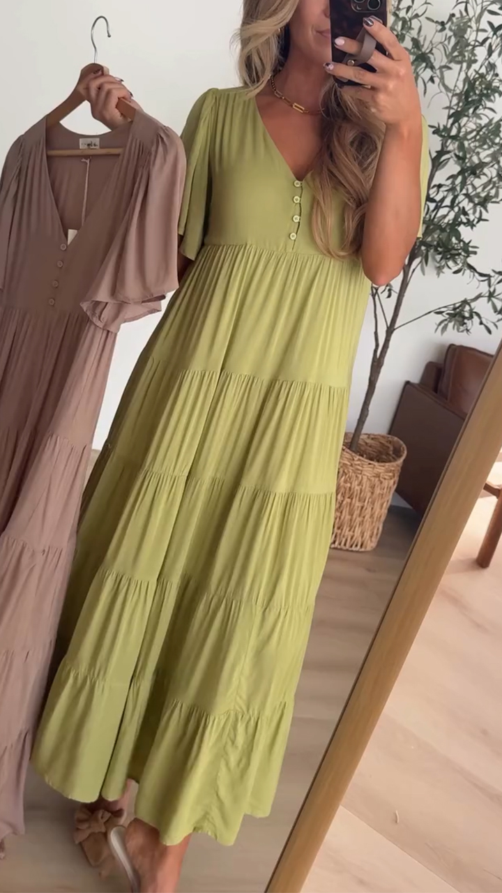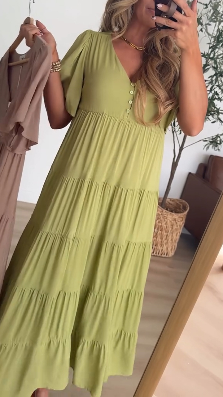 Damska sukienka swobodna z dekoltem w serek i patchworkiem