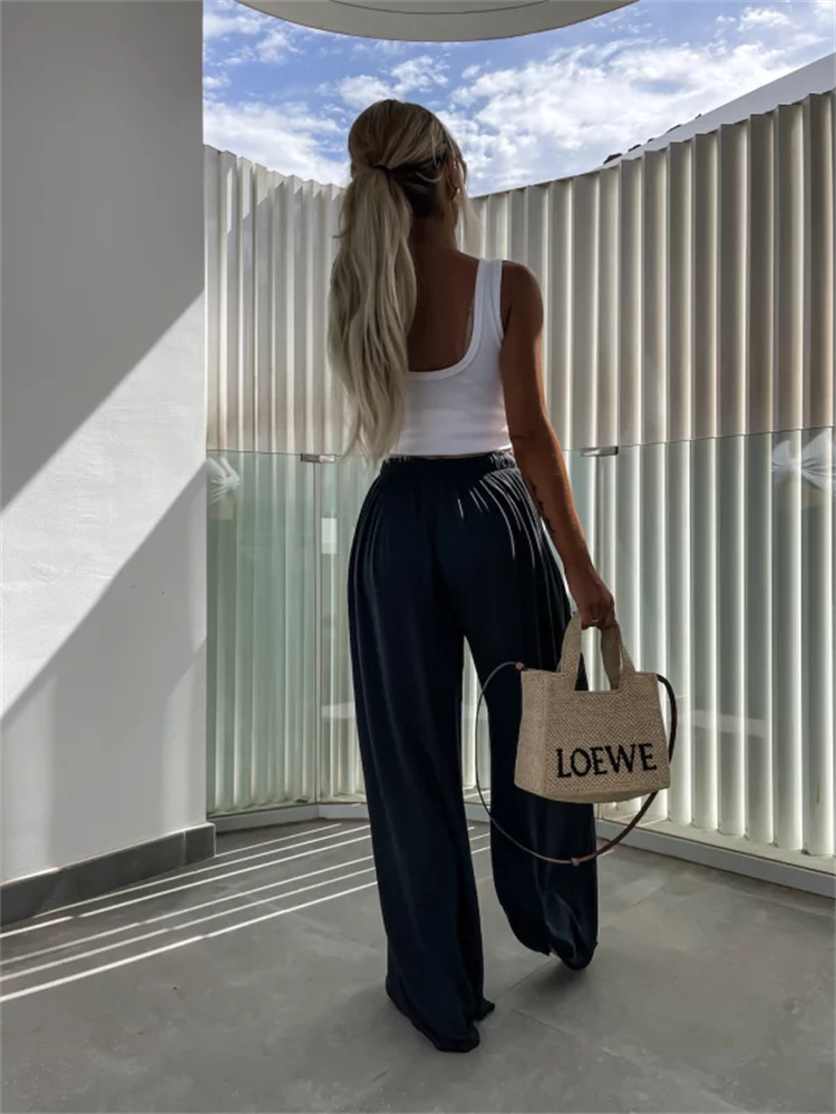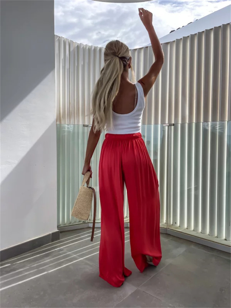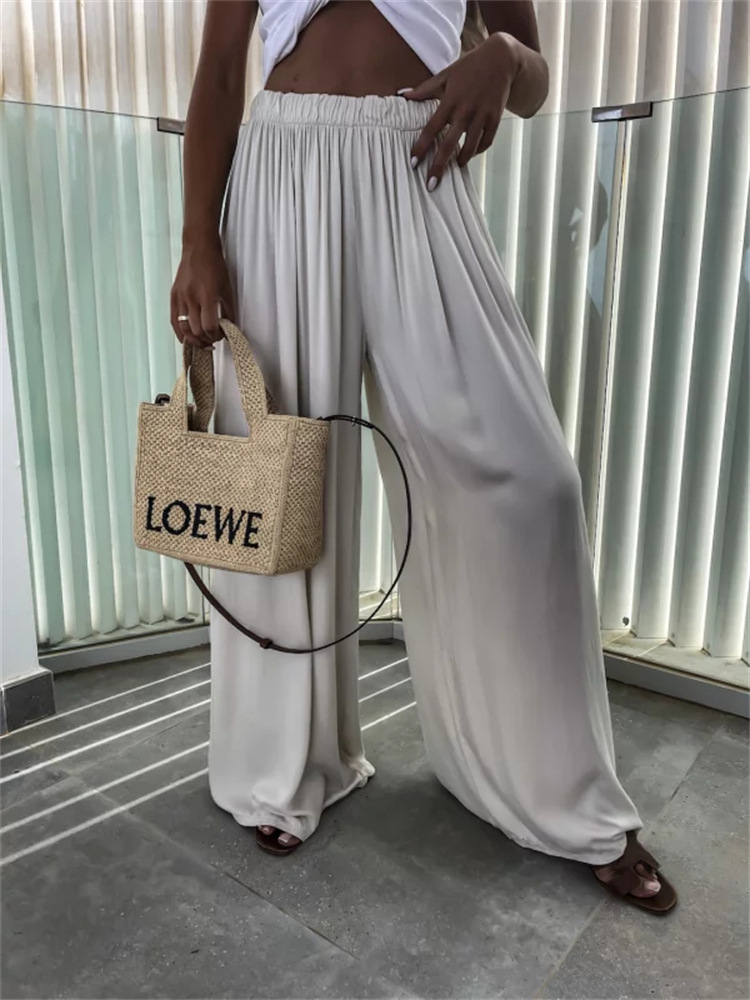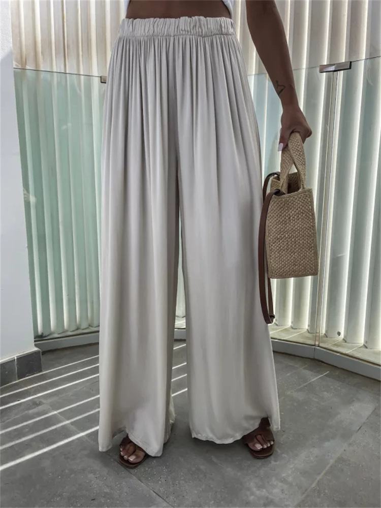 Luźne, jednokolorowe spodnie z szerokimi nogawkami, modne, elastyczne spodnie do mopowania