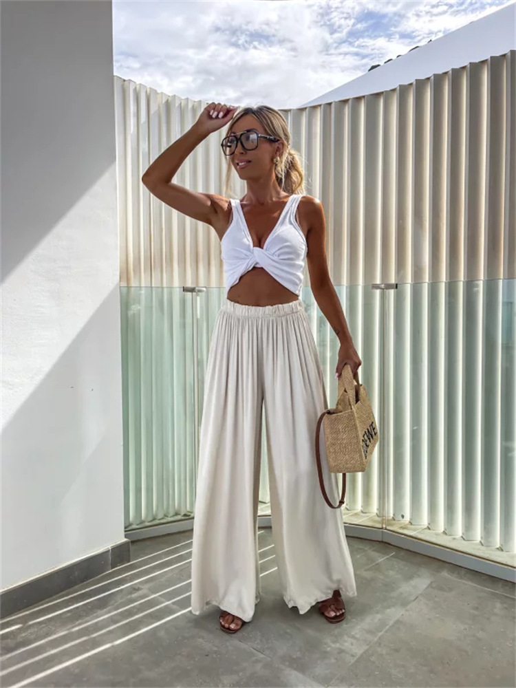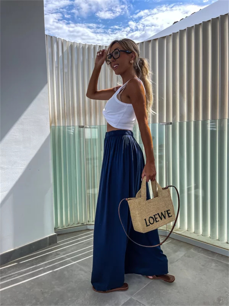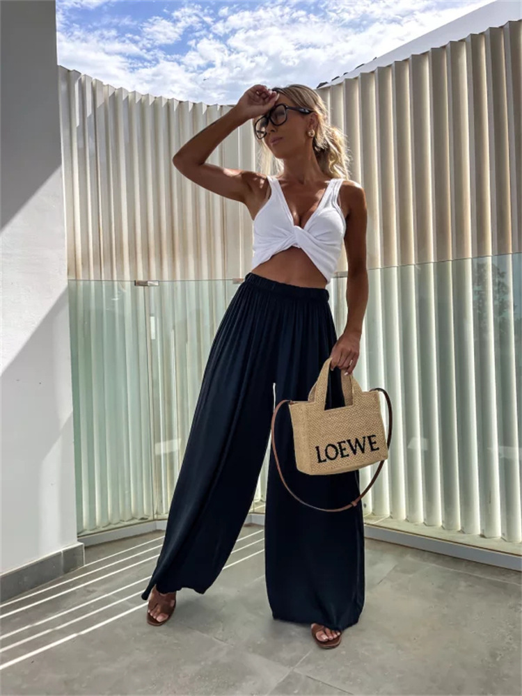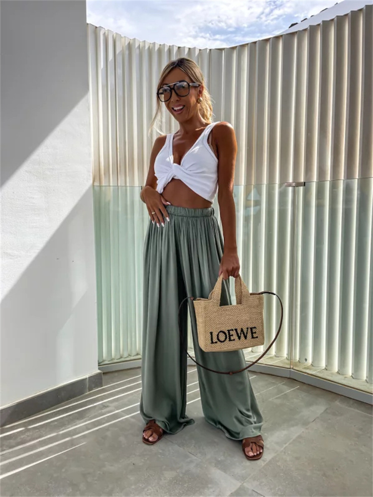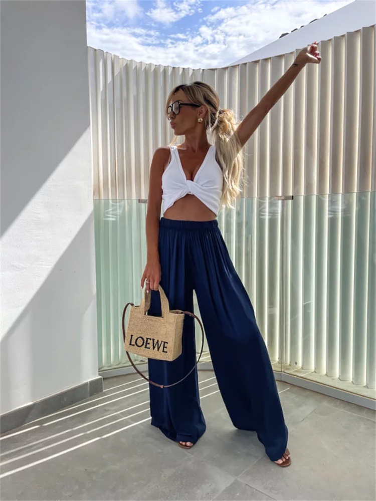 Luźne, jednokolorowe spodnie z szerokimi nogawkami, modne, elastyczne spodnie do mopowania