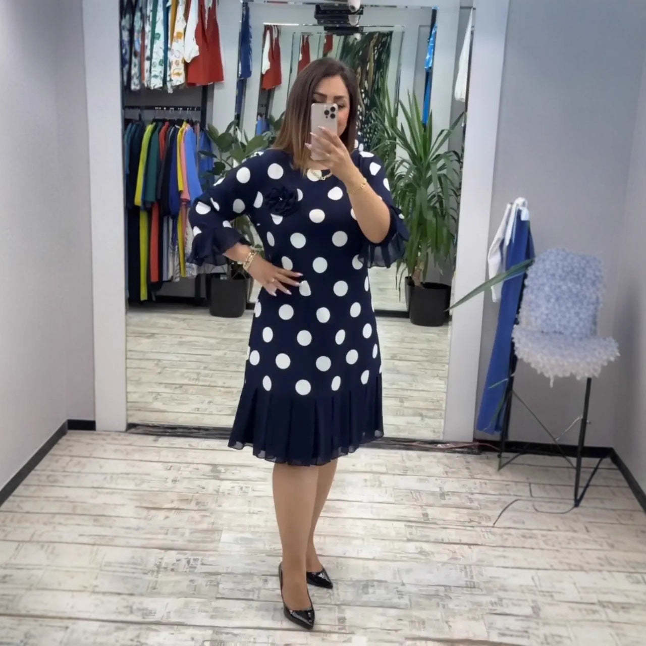 Sukienka damska plisowana w groszki