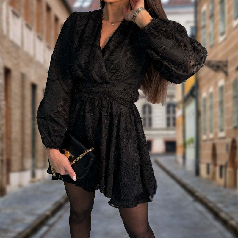 ELEGANT LONG V-NECK: The deep V-neck adds sophistication, while the long sleeves offer coverage and elegance, perfect for cooler weather or formal gatherings.