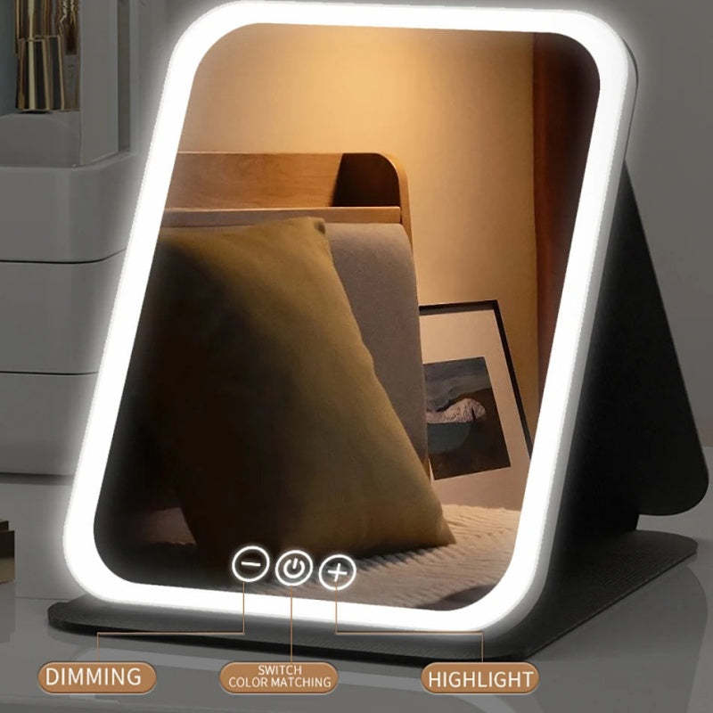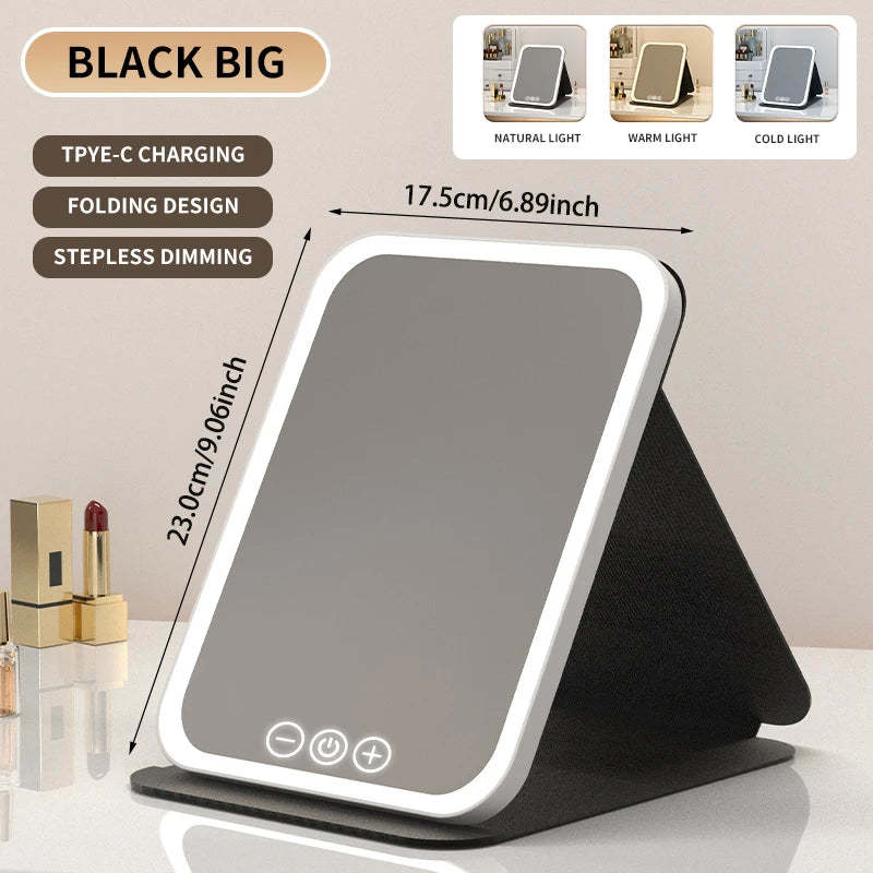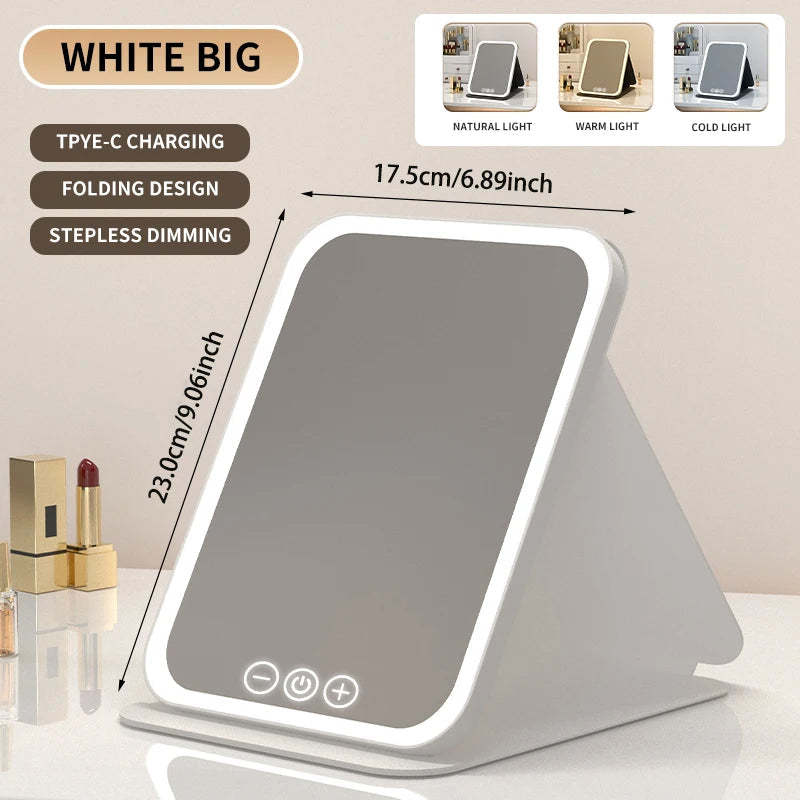 ŚWIATŁA LED WYSOKIEJ JASNOŚCI - Wyposażone w jasne diody LED i oświetlenie boczne, lustro to zapewnia wyraźne, szczegółowe odbicie, a jednocześnie jest delikatne dla oczu, idealne do nakładania makijażu.