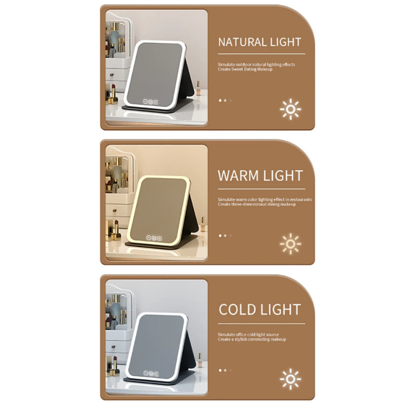 WIELE TRYBÓW OŚWIETLENIA - Wybierz jedną z trzech różnych opcji oświetlenia - ciepłego, białego i zimnego białego światła - wraz z funkcją przyciemniania, zapewniając idealne światło do każdego makijażu lub zadania pielęgnacyjnego.