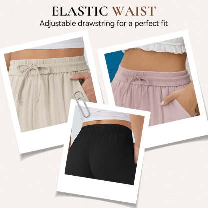 ELASTIC DRAWSTRING DESIGN - The waist of these pants is designed with an elastic drawstring. This feature provides enhanced flexibility, allowing you to adjust the waistband for maximum comfort, whether you're sitting, standing, or moving around.