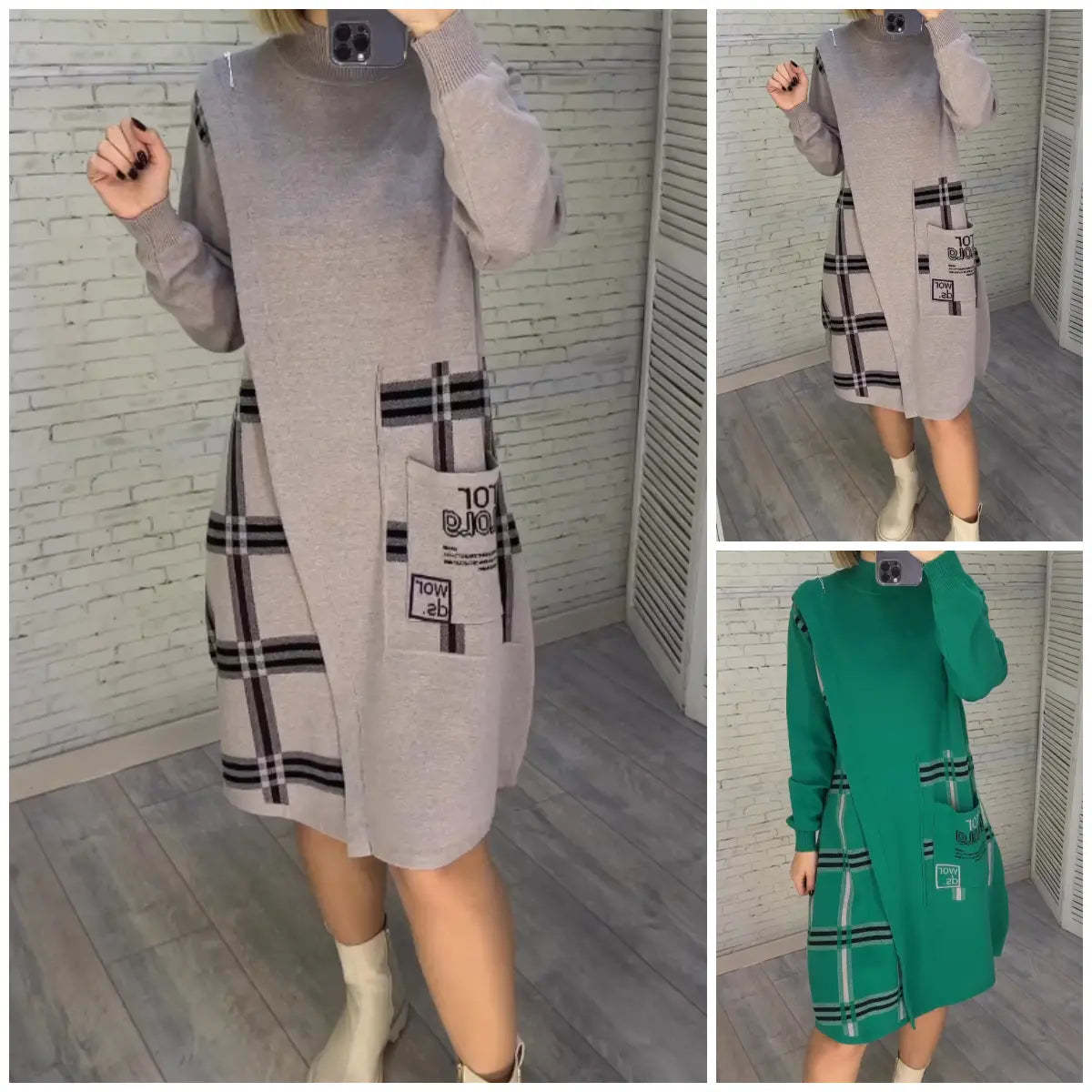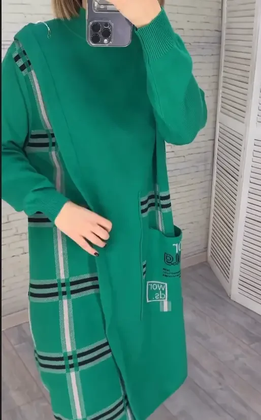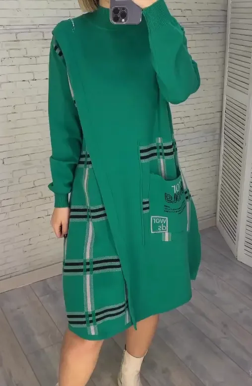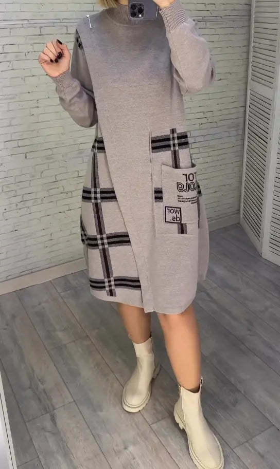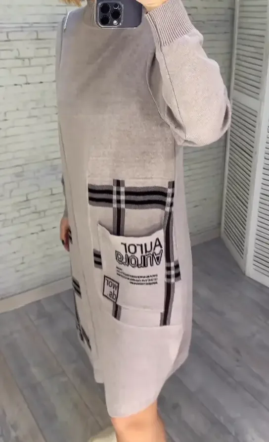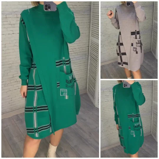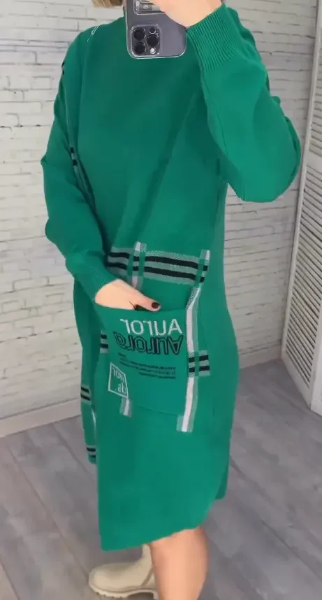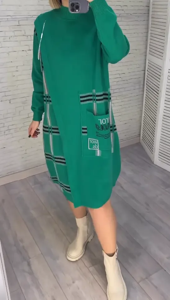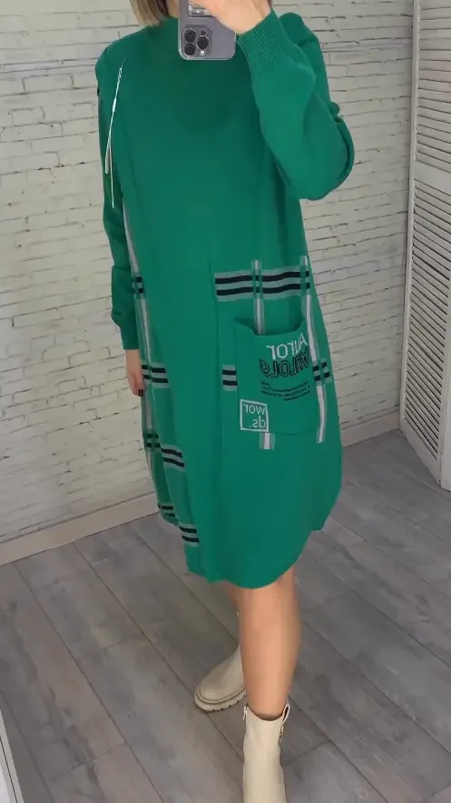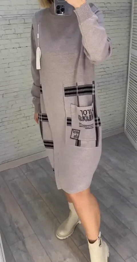 Nowa dzianinowa sukienka z nadrukiem