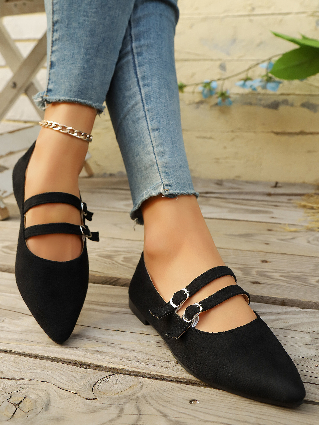 The clean, pointed toe design naturally elongates the foot, creating a more slender and refined look. The flat sole and sleek silhouette offer both comfort and a sophisticated presence.