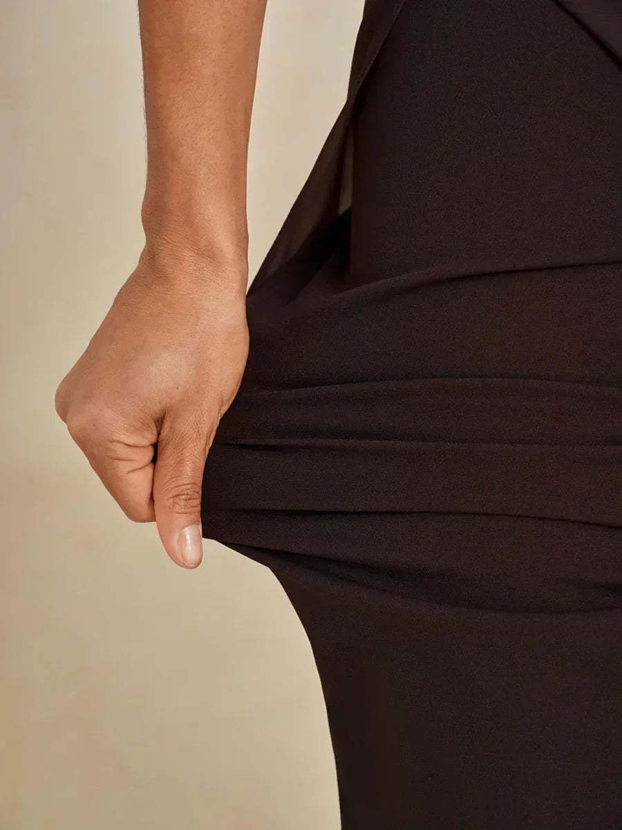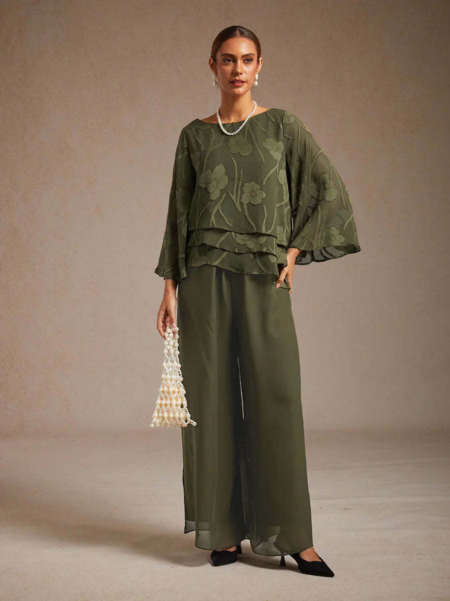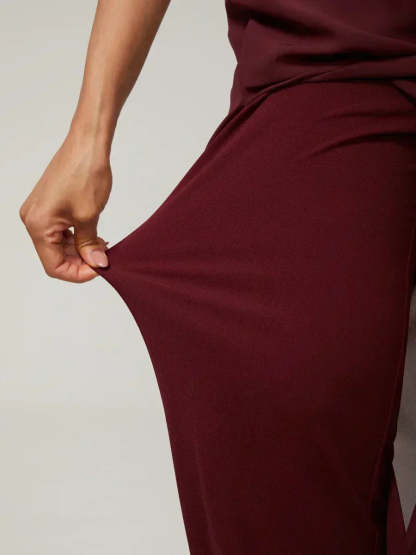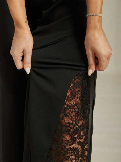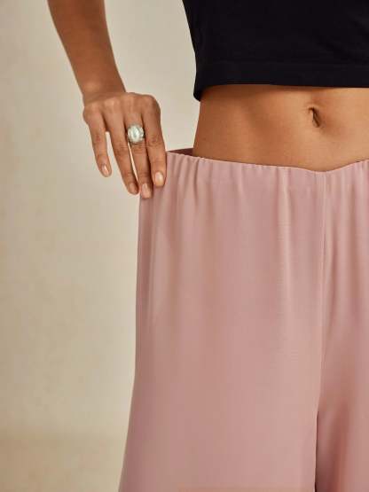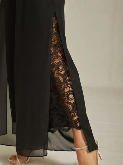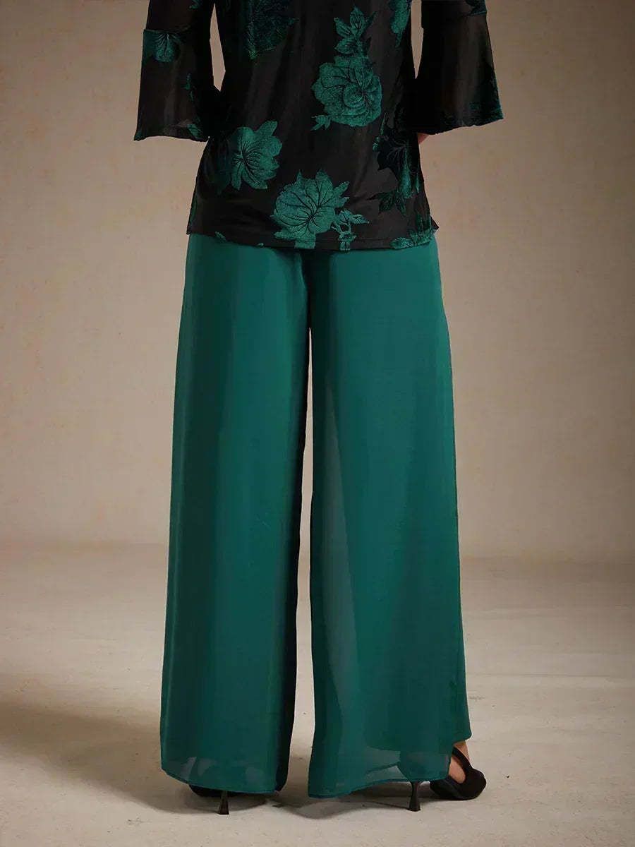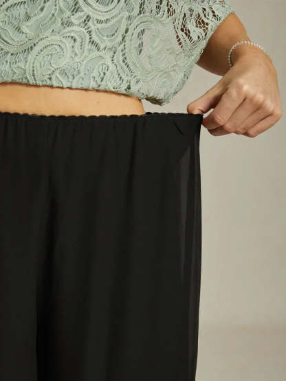 Wkrocz w swobodną elegancję dzięki tym spodniom z prostymi nogawkami i nakładką z lejącego szyfonu i rozciętymi nogawkami. Projekt łączy w sobie wygodę i wyrafinowanie, z miękką, rozciągliwą podszewką do noszenia przez cały dzień. Przezroczysta szyfonowa nakładka dodaje pełnego wdzięku ruchu i odrobiny dramatyzmu, idealna na wieczorne imprezy, wesela, bankiety lub ekskluzywne kolacje. Połącz je ze szpilkami, aby uzyskać wyrafinowany wygląd, lub załóż je do butów na płaskiej podeszwie, aby uzyskać szykowny wygląd w ciągu dnia.