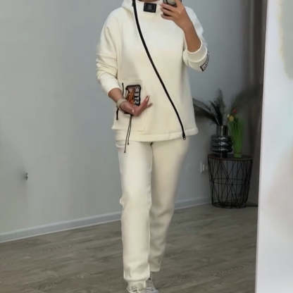 Zestaw zawiera: 1* Stylowy dwuczęściowy komplet z bluzą zapinaną na ukośny zamek błyskawiczny