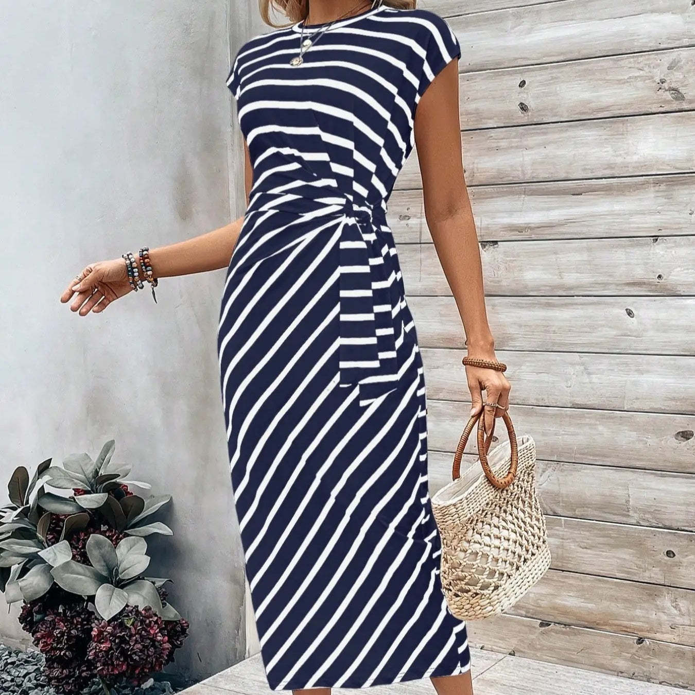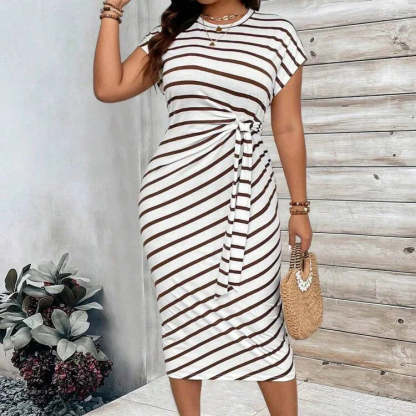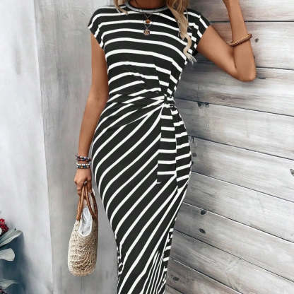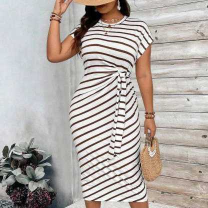 ELEGANT STRIPED WITH COLOR-BLOCK DESIGN: The chic striped pattern combined with a bold color-block design creates a fashionable, eye-catching look. Perfect for both casual outings and stylish summer events, this dress is a wardrobe essential.