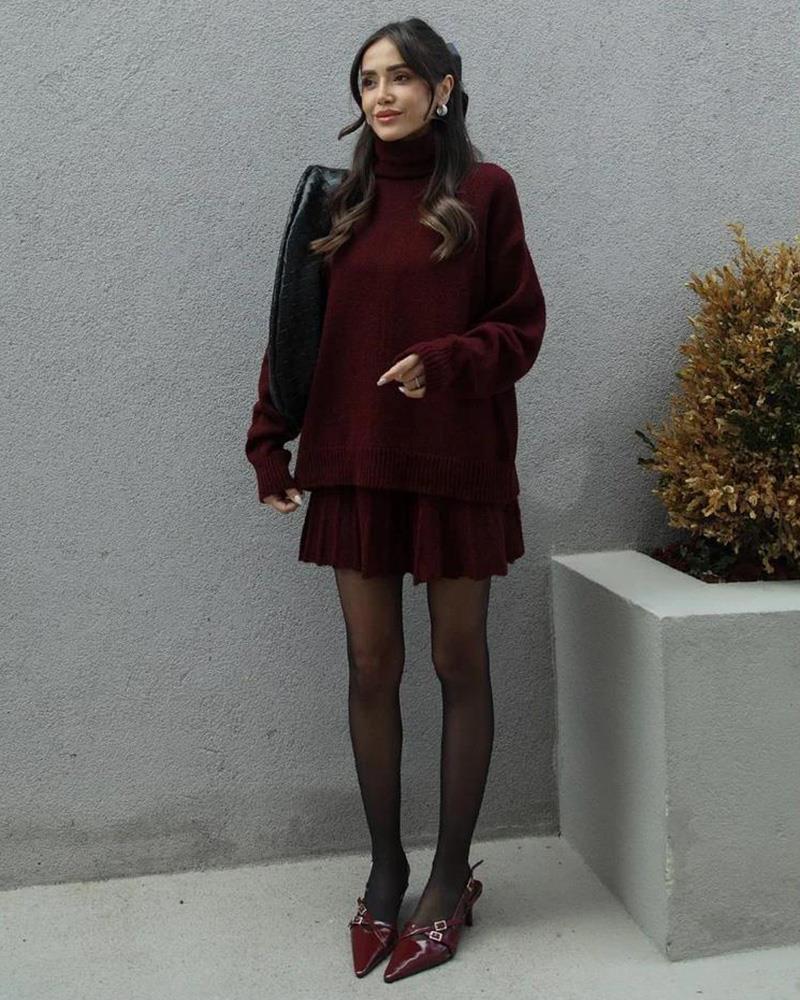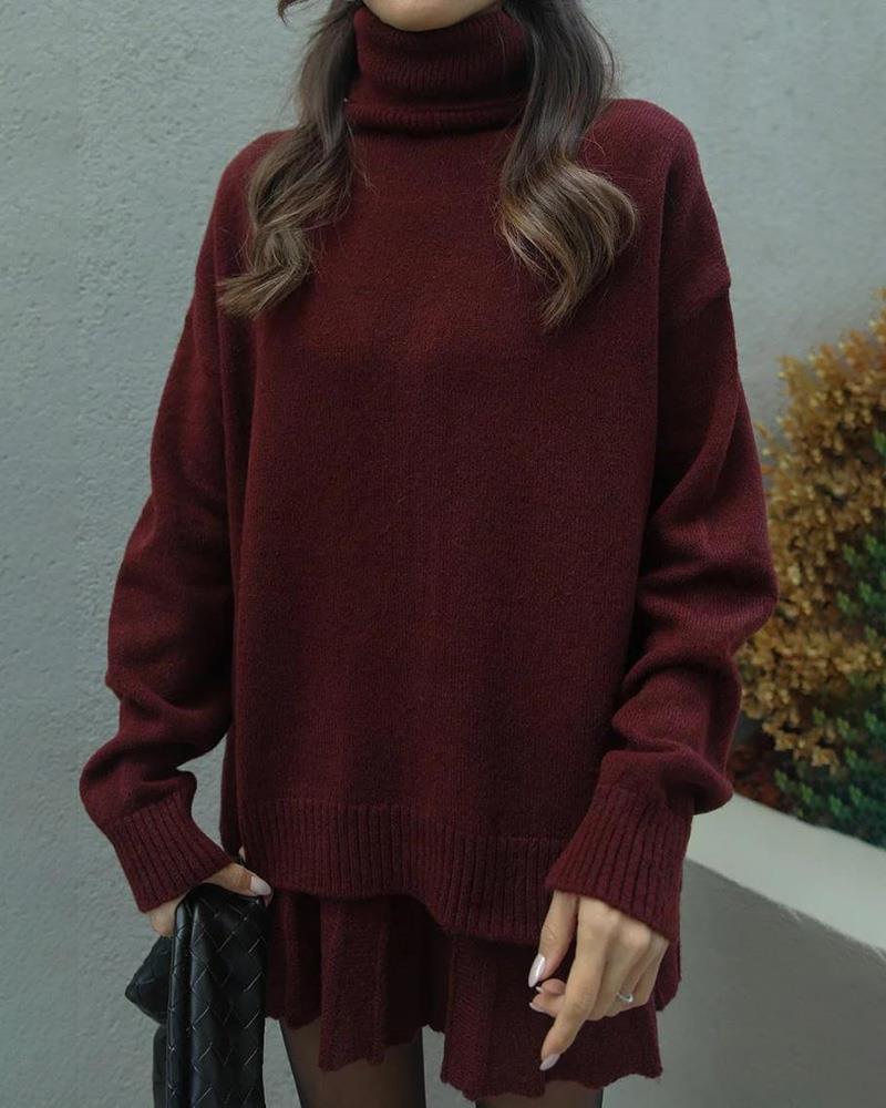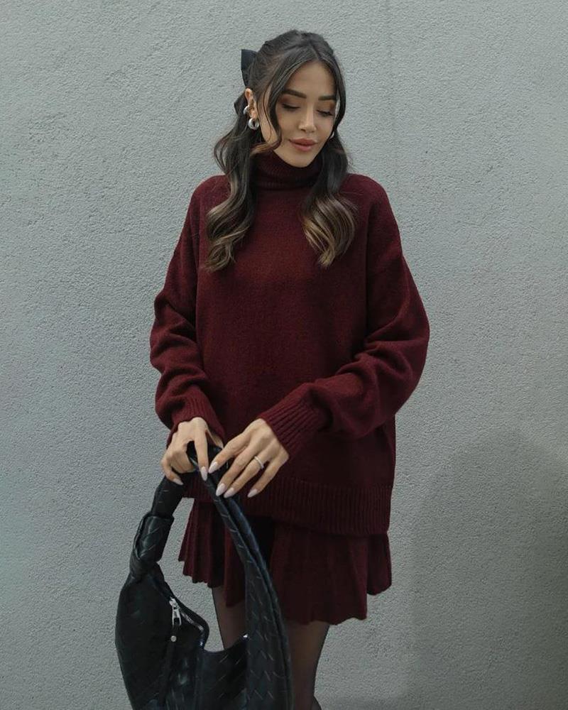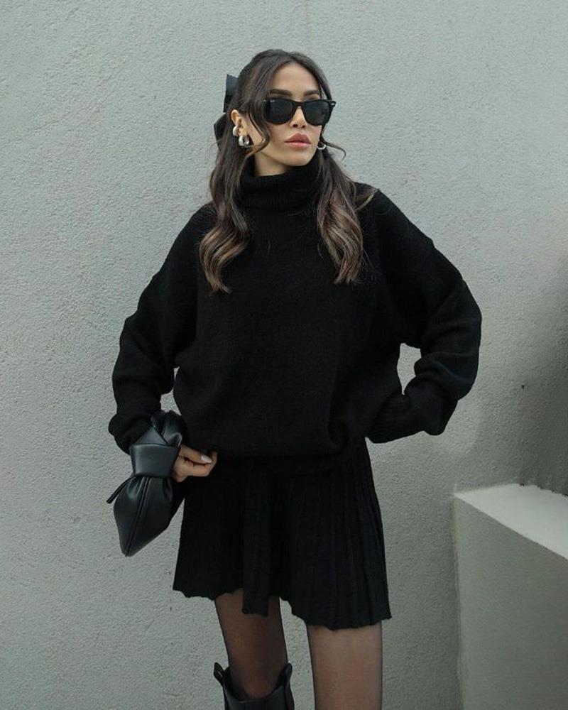 Versatile Knitted Shirt Short Half Skirt Two Piece Set