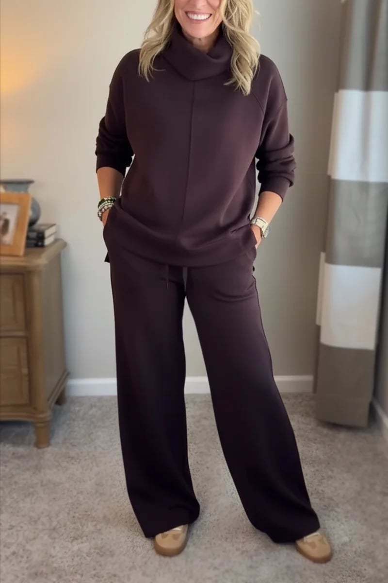 Dwuczęściowy damski komplet podróżny z golfem – bluza z rozcięciem na boku i spodnie casualowe 🔥 Nowość!