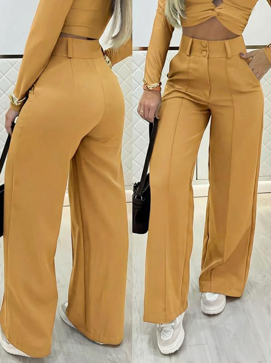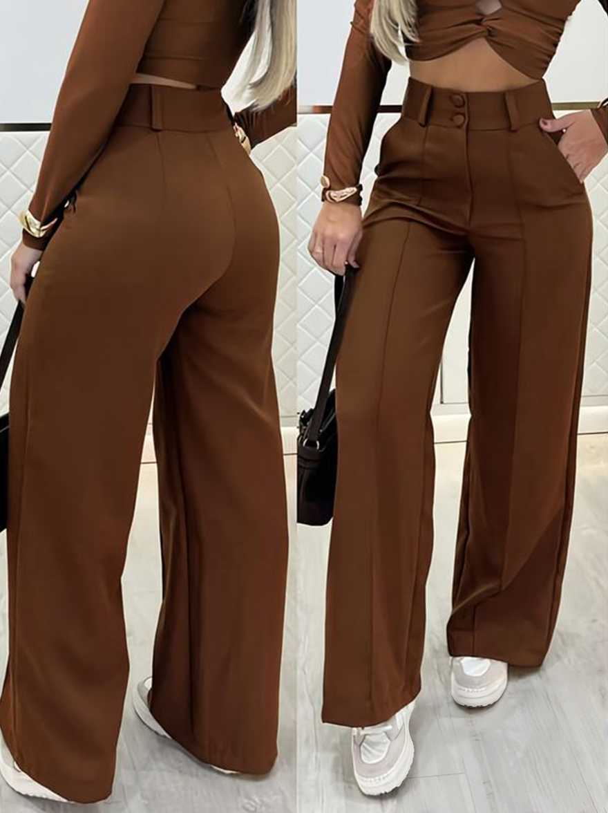 1 x Damskie spodnie z wysokim stanem i szerokimi nogawkami
