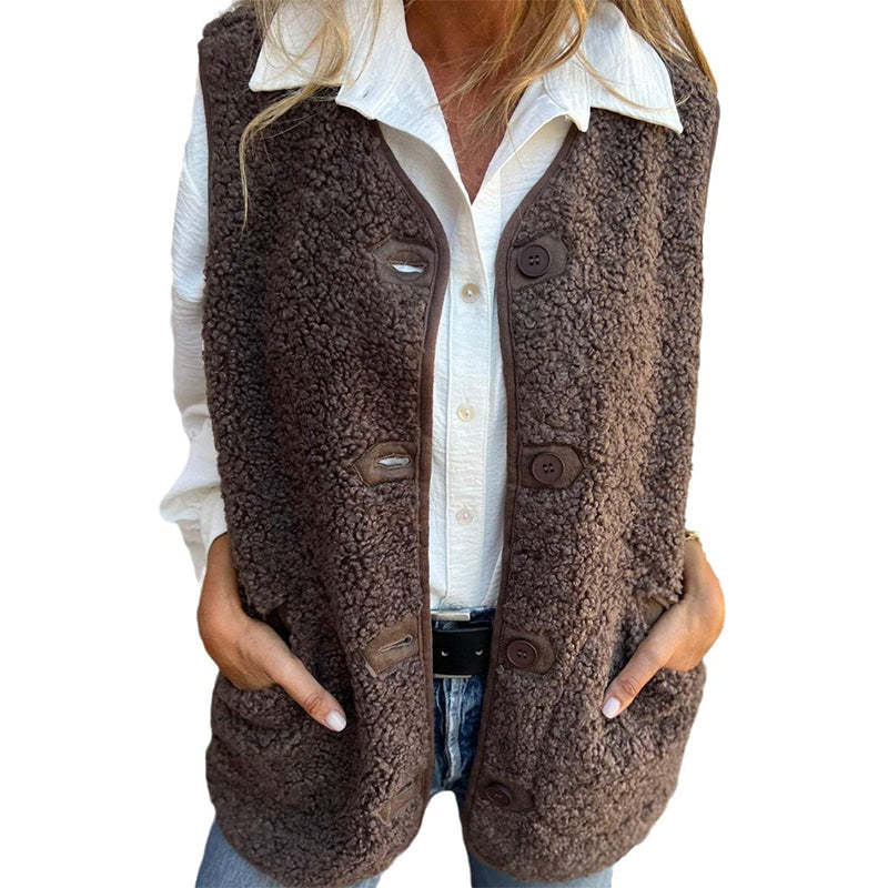 Damska jesienna krótka ciepła kamizelka zapinana na guziki